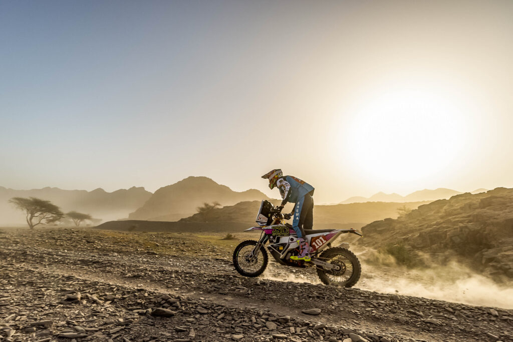 Besonders bemerkenswert war seine Konstanz über die gesamte Distanz der Etappe hinweg. Kilometer für Kilometer hielt Maxi seine Konzentration hoch, traf die richtigen Entscheidungen und brachte Maschine und Material sicher durch die Strapazen der Wüste. In einem Rennen, das weniger von einzelnen Spitzenleistungen als vielmehr von Durchhaltevermögen und Fehlervermeidung entschieden wird, ist genau das eine der größten Stärken.