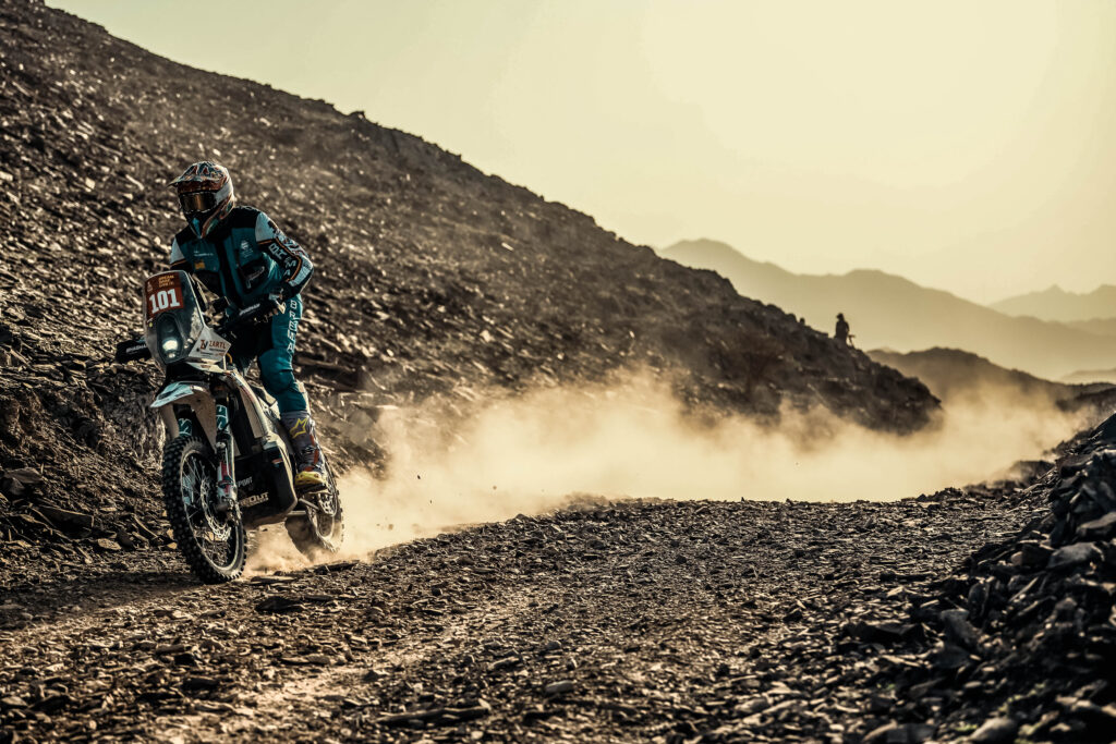Und genau so fährt man eine Dakar.